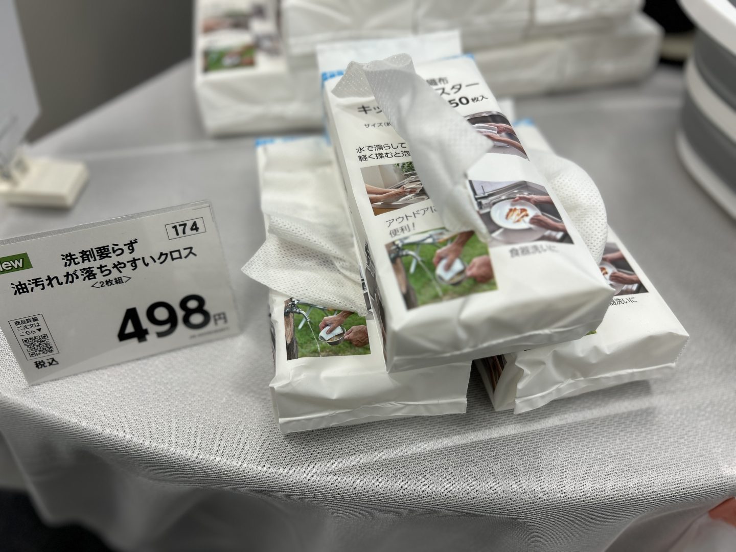 こちらもL’CRESTの商品で、水にぬらすだけで泡立つ中性洗剤付きの使い捨て不織布です。中性洗剤がなくても食器類をしっかり洗うことができるので、アウトドアシーンなどに大活躍しますよね。あとは説明を聞いてなるほど、と思ったのは「スポンジを知らない人と共有したくない人にオススメ」という点。例えばオフィスのキッチンで食器やお弁当箱を洗う際、誰が使ったのかよくわからないスポンジを使うのはちょっと抵抗がある。そんな時、これが備え付けられていれば、すごくうれしいと思います。