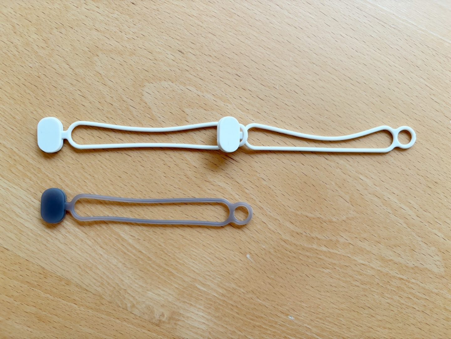 留め穴を広げて留めるのは子どもには難しいですが、輪ゴムのようにシリコーンバンドを広げて留めるくらいなら子どもでも大丈夫! 使い方も二通り使い分けられるのが便利です。