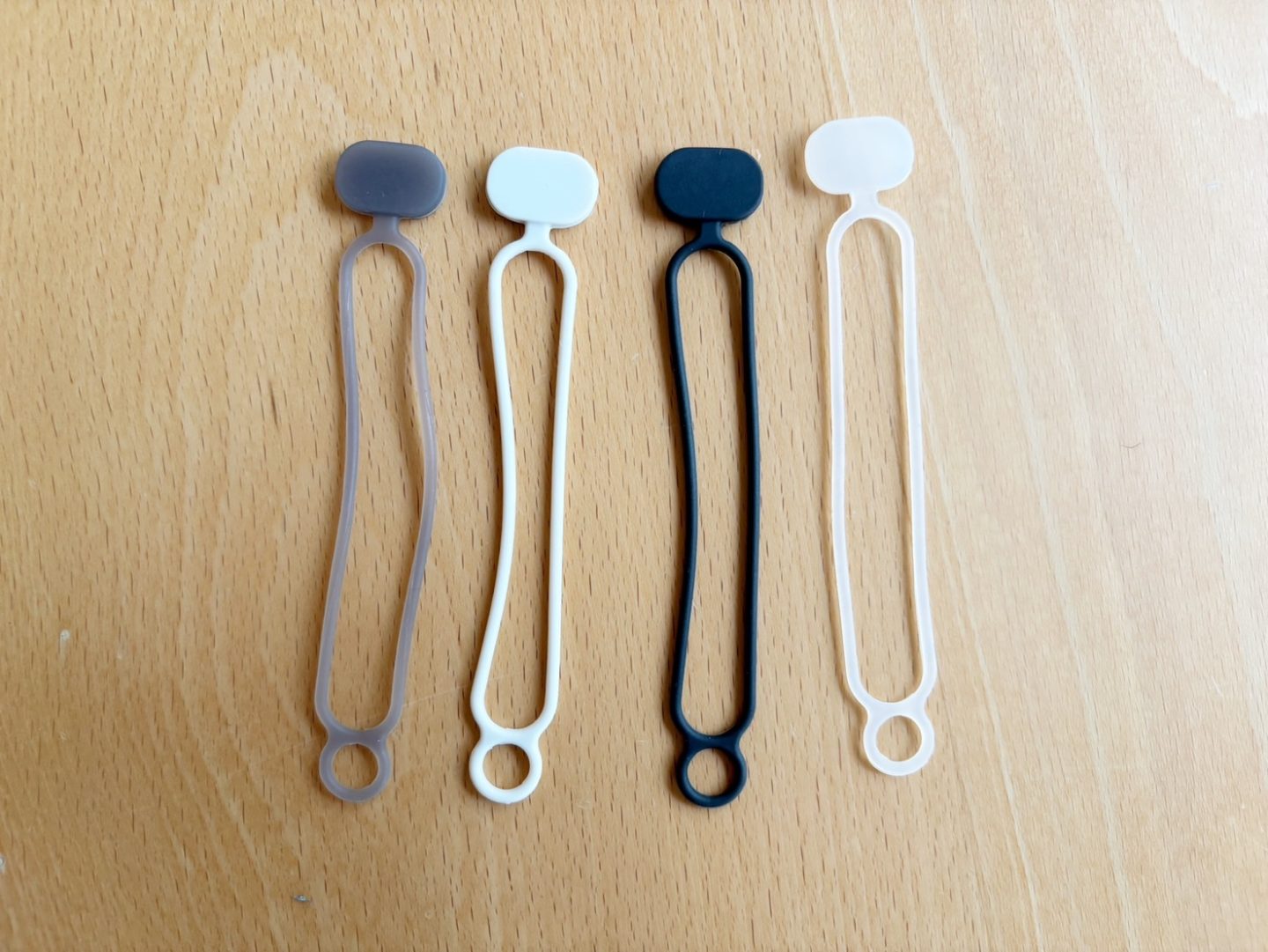 我が家の場合は、食べかけのお菓子や使いかけの冷凍食品の袋留めに使っているだけでなく、誰が使ったのかわからなくならないように、タグ替わりにペットボトルやコップにつけて使ったり、お風呂の拭き上げシートを引っ掛けているワイヤークリップの落下防止に使ったり、保管時のバッグの紐やガジェット類をまとめるのに使ったりと大活躍中。