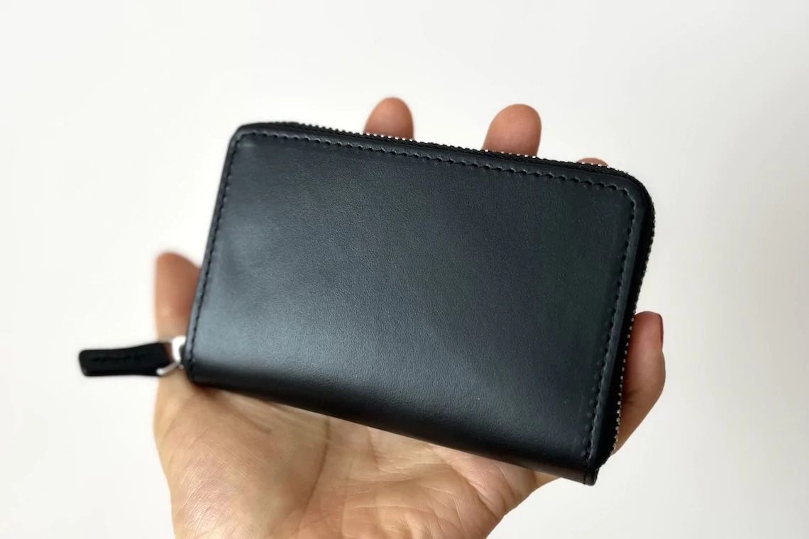 サイズ感、仕様、素材、価格……さまざまな要素をクリアしたのが『無印良品』の「ベジタブルタンニンレザー マルチパーパス ケース」(6,990円・税込)です。カラーはグレイッシュブラウンと黒の2色ありましたが、筆者は黒を購入しました。