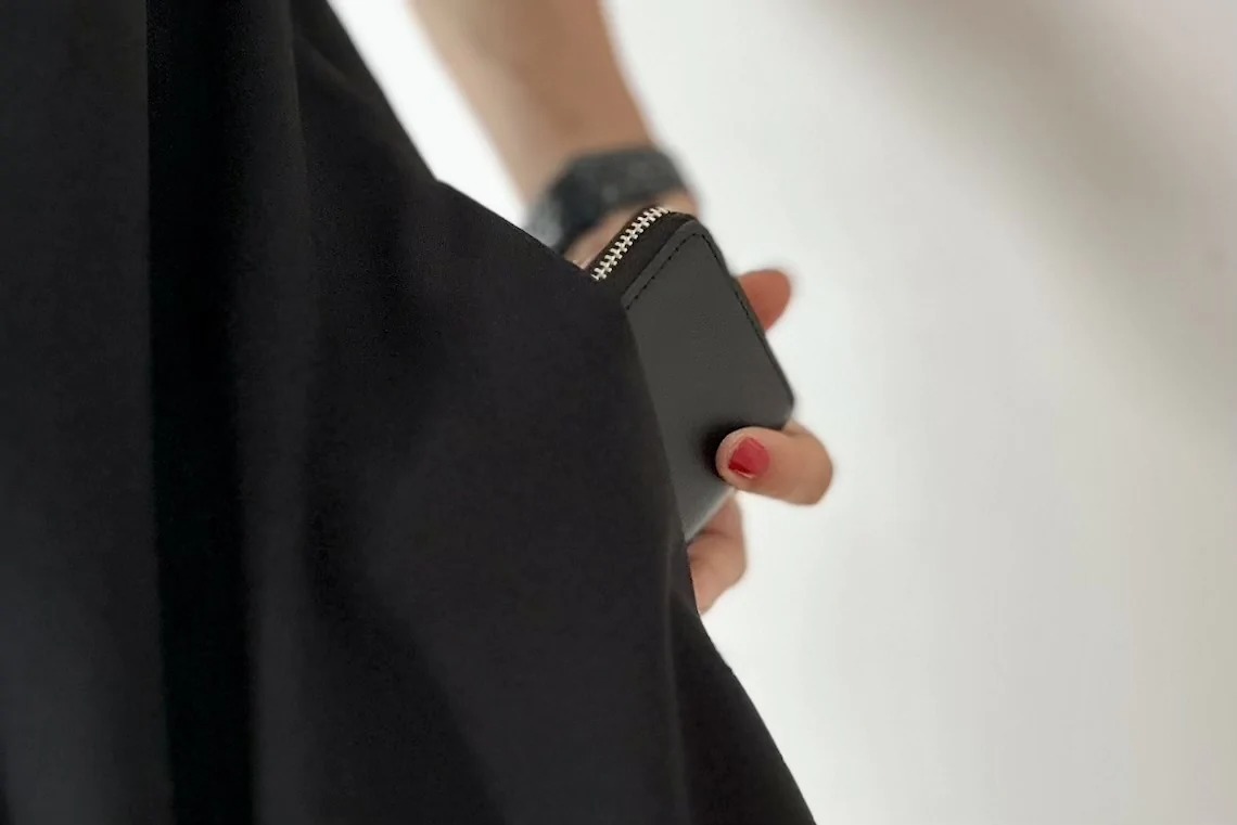 サイズ感は、余裕でクリア! ワンピースのハンドポケットやデニムのヒップポケットにもスッとおさまります。