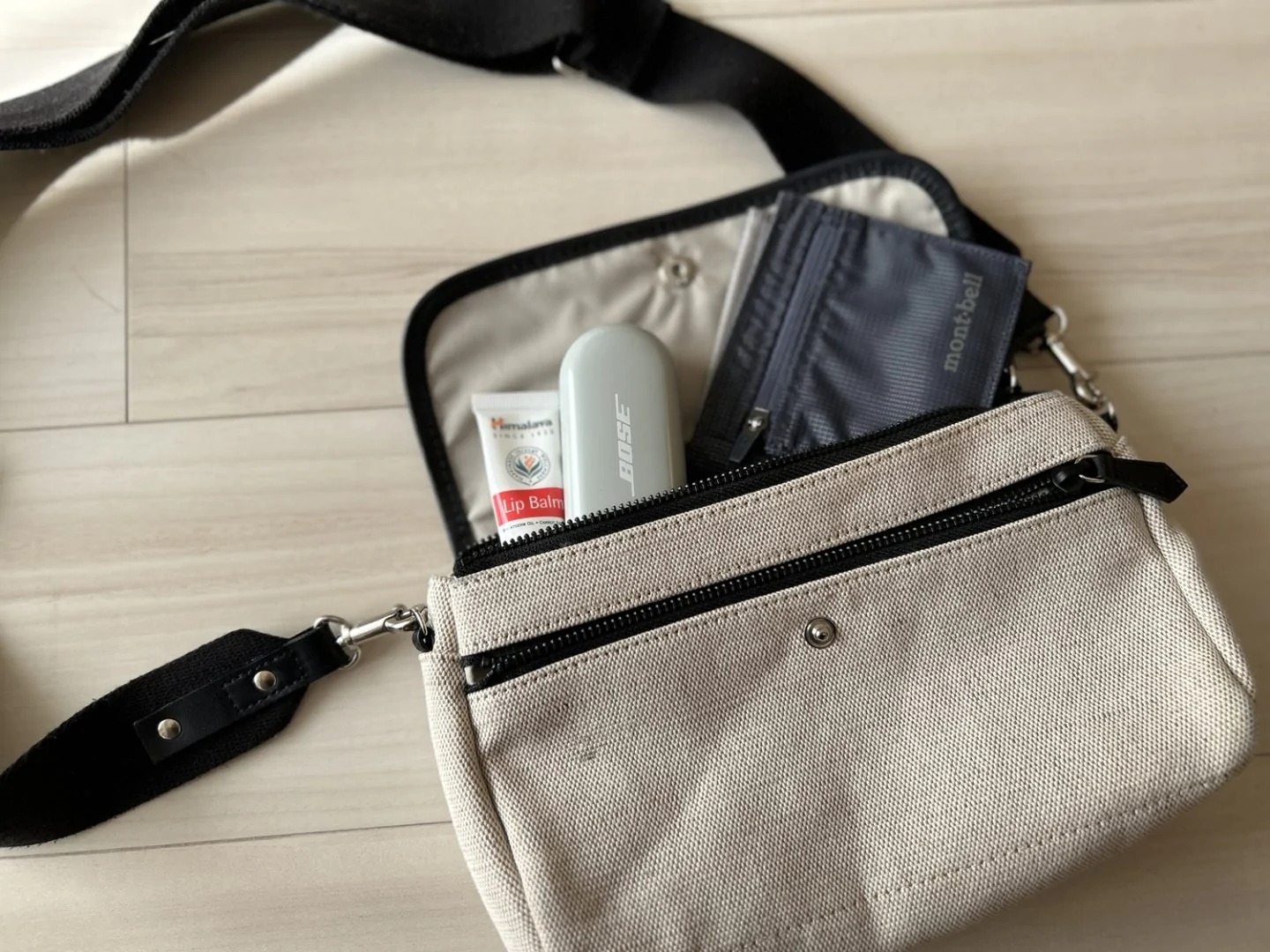 何といってもコンパクトなのがいいんです。普段『山と道』のサコッシュを愛用しているのですが、ぺたんこなサコッシュ内で場所を取ることもなく、軽々と持ち運べる快適さ!