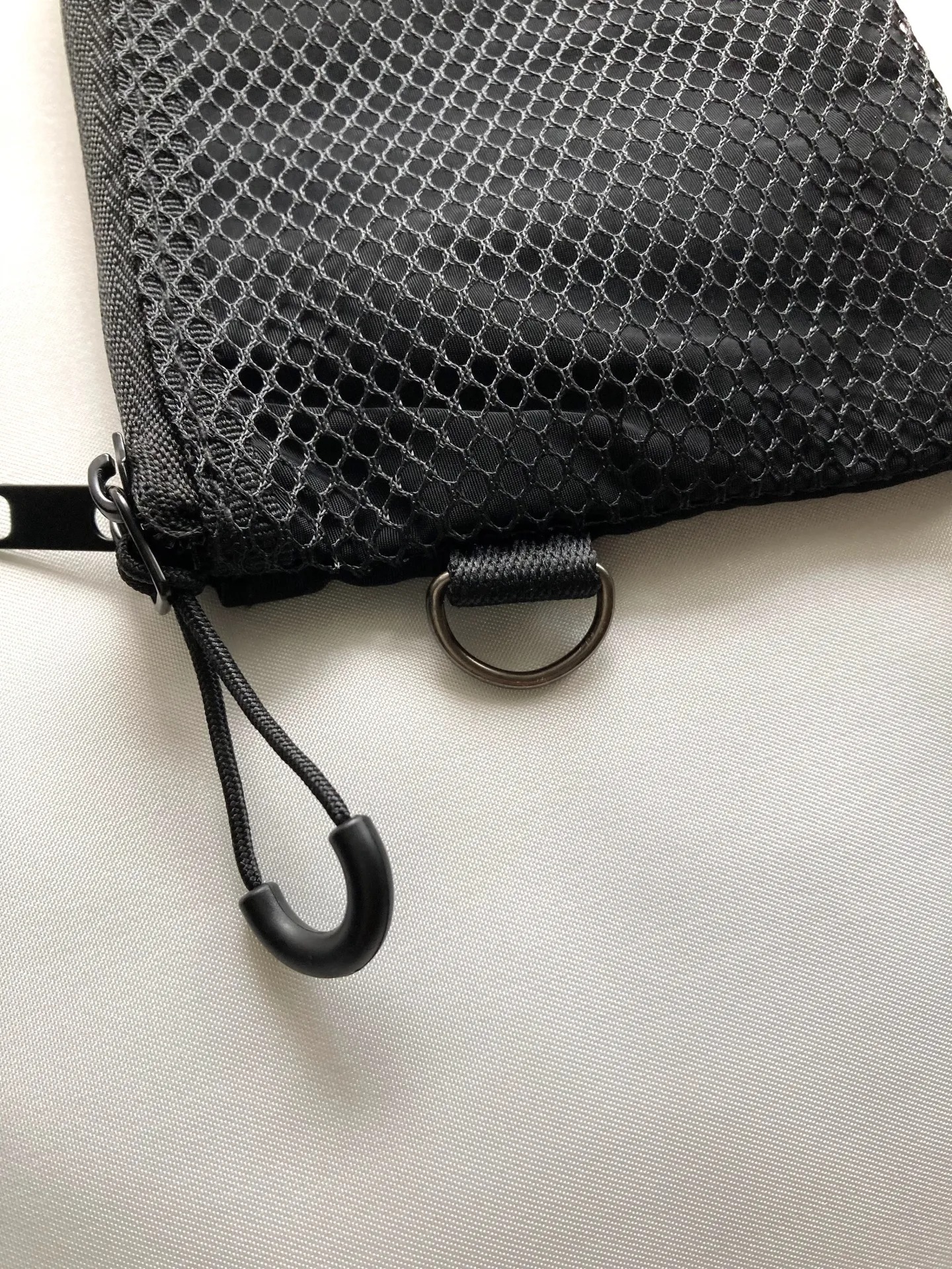 「ポリエステルダブルファスナーケース」は表面がメッシュ地、裏面がポリエステル地の2つのファスナー付きケースが合わさった仕様になっています。