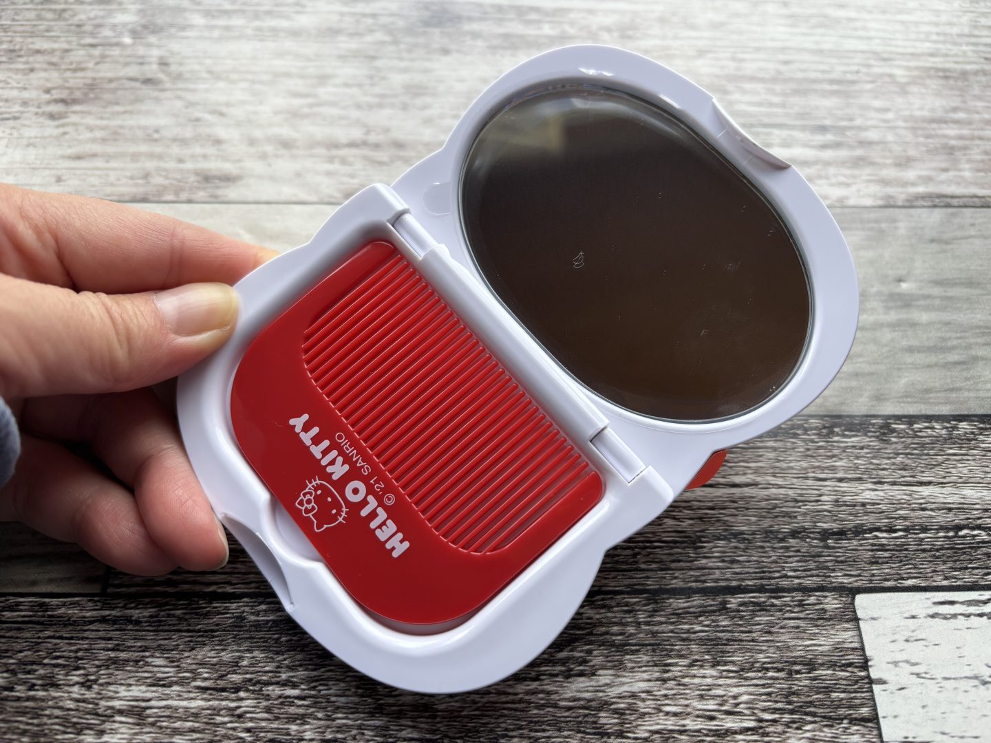 そして最近、やたらとまわりの人たちが買っているのが“フェイス形ミラー&コームセット”。「ポチャッコ」を持っている人、「クロミ」派もいたな。そうだ、“マイメロ”と「ハンギョドン」を持っている人もいた! そういえばあの人は「シナモロール」だ!……ざっと思い出しただけで5人いました(笑)。これ、ポーチの中に入れておくのにちょうどいい大きさで、正直、コームはあまり使わないんですが、ミラーが使いやすいんです。