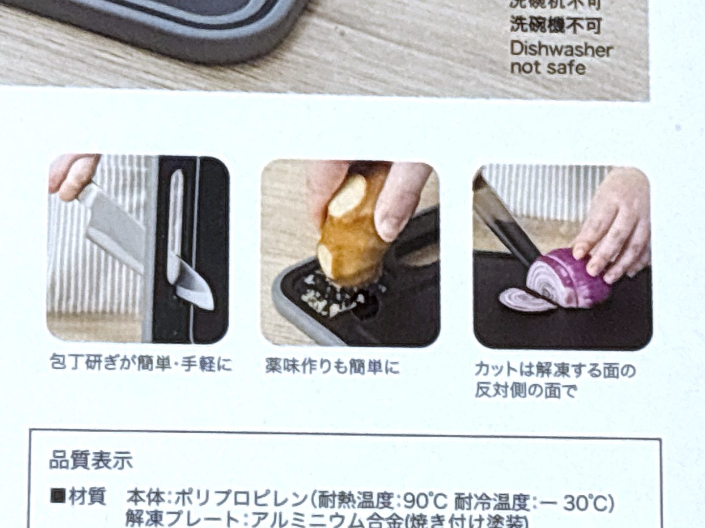 まな板の裏面についている解凍プレート。じつは私、これが目当てで購入しました。お肉やお魚は大部分を冷凍保存しているので、解凍プレートがずっと気になっていたんです。