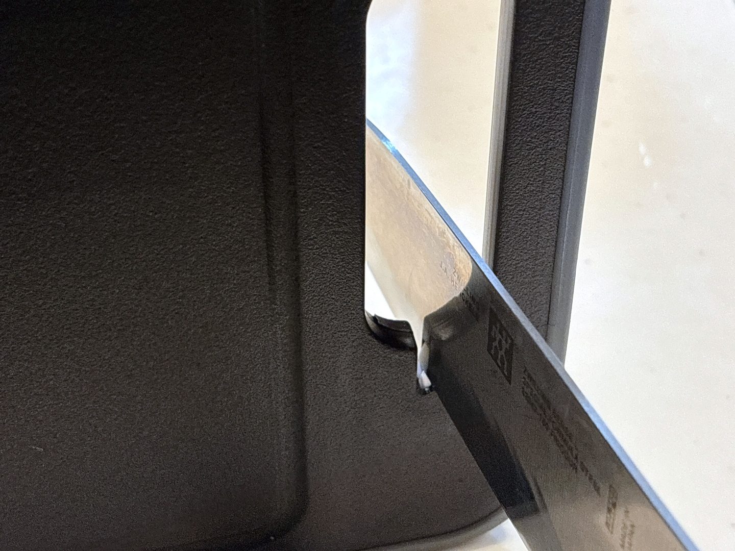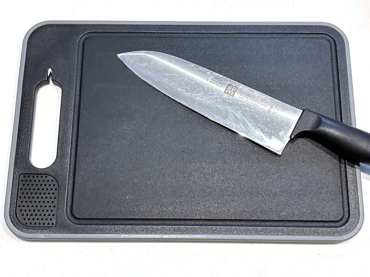 まな板に包丁を研ぐシャープナーがついてるって、珍しくありませんか? ちょっと切れ味が落ちたときに、包丁をさくっと研げるのは手軽でよい!と思ったのですが……。