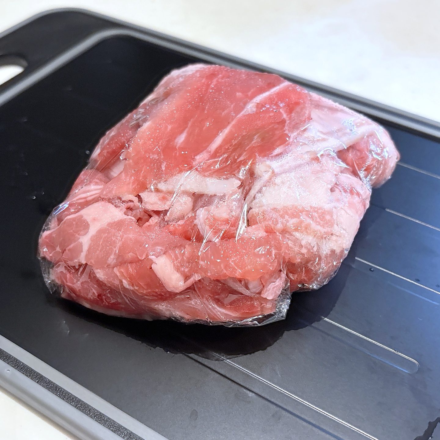 実際に使ってみると、解凍したお肉からドリップがまったく出ていないことに驚き……! そのまま普通のお皿などに置いておくより解凍時間も早く感じました。1時間ほどで半解凍になり、しかもムラなく解凍できたので、これは予想以上の便利さです。