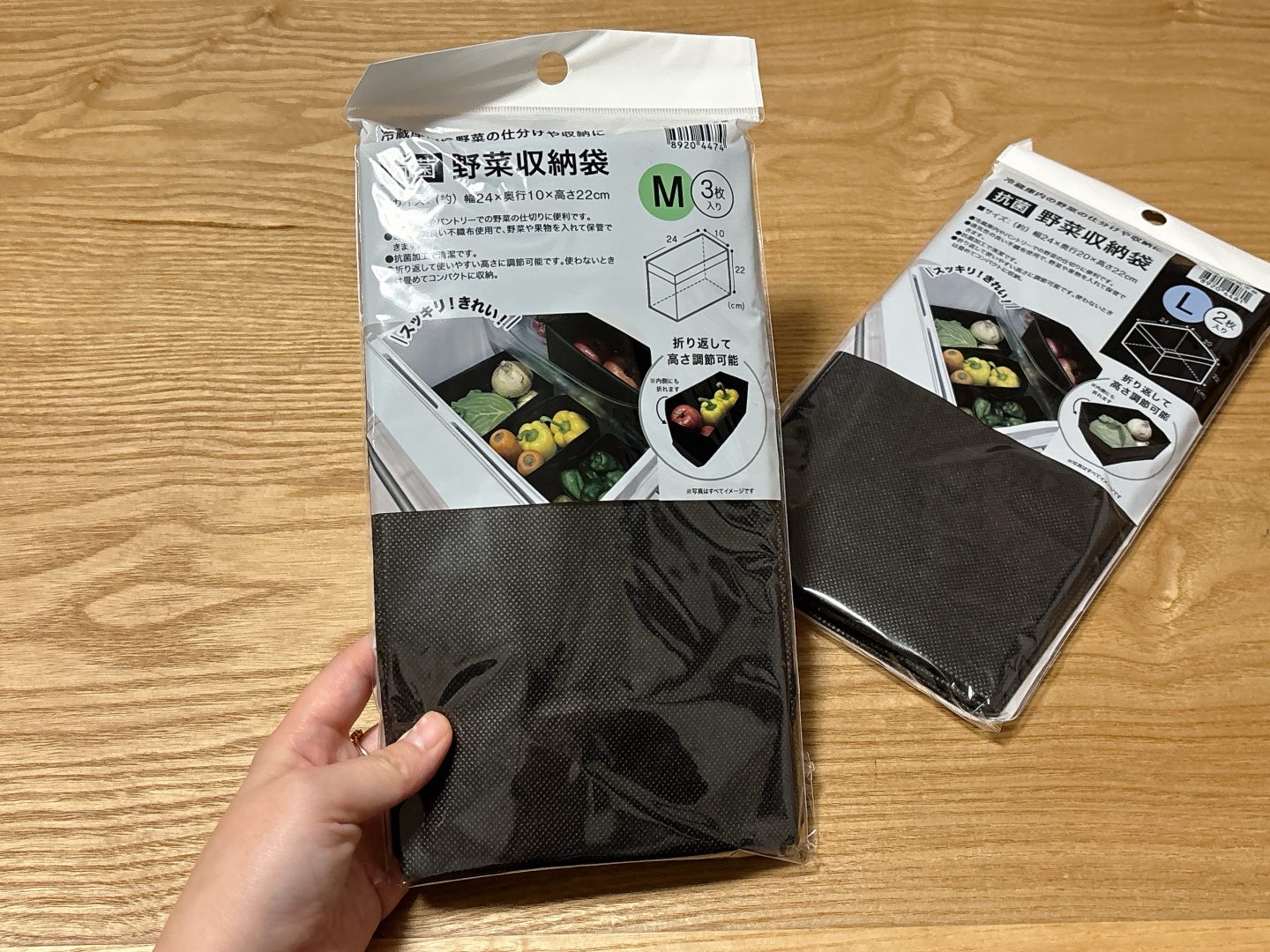 ちなみに、サイズはM・Lの2種類あります。価格は同じで、Mサイズは3枚入り、Lサイズは2枚入りです。今回は両方購入して、野菜室をリセットすることにしました!