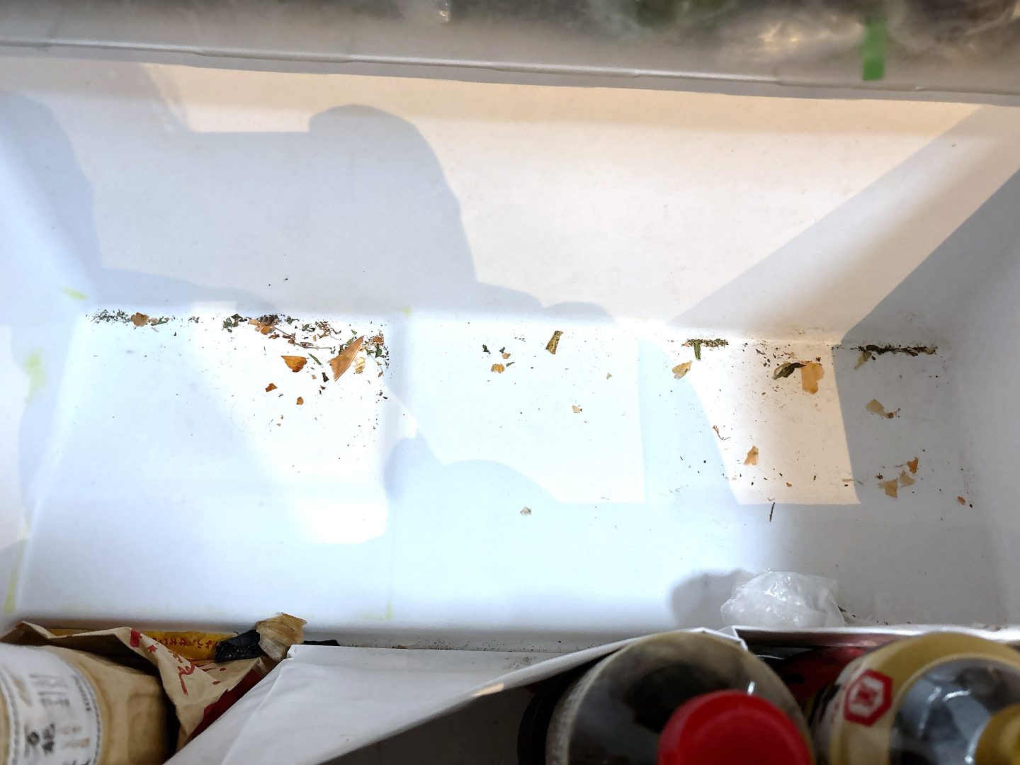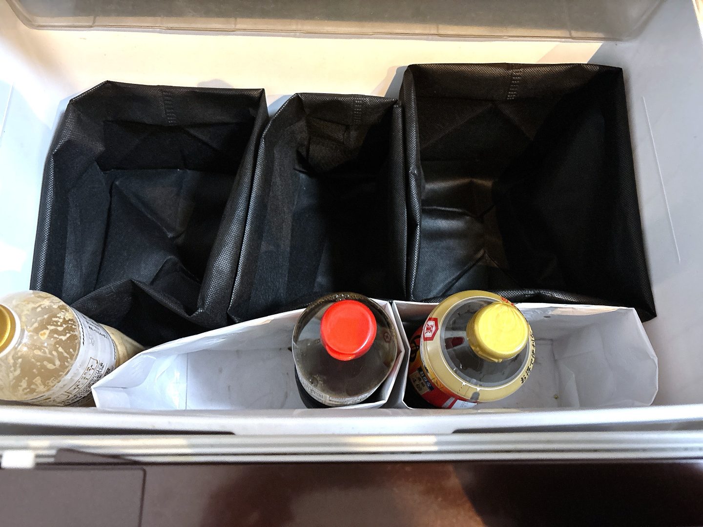 特に問題なのは、冷蔵庫の「野菜室」。干からびた野菜の皮や、土・砂ですぐにザラつくんですよね。直接野菜を入れると汚れやすいので、これまでは要らない紙袋を整理に活用していました。でも袋のサイズや色が統一できないので、なんかスッキリしない……。
