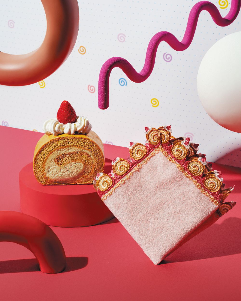 12月の「シーズンタオルハンカチ」は「ロールケーキ」。
