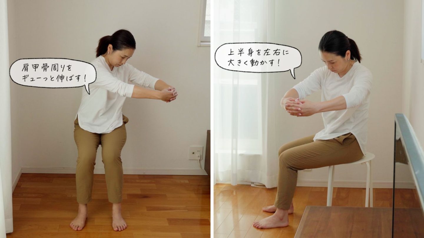 座ったまま手軽にできる「肩甲骨はがし」をすき間時間の習慣にして、固くなりがちな肩甲骨・背中のこりを改善しましょう!