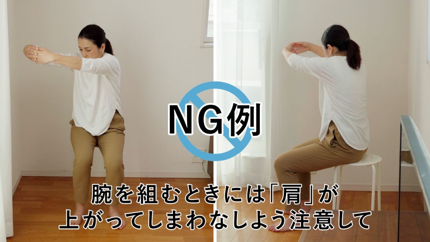 腕を伸ばす際に、肩が上がってしまわないよう気を付けましょう。