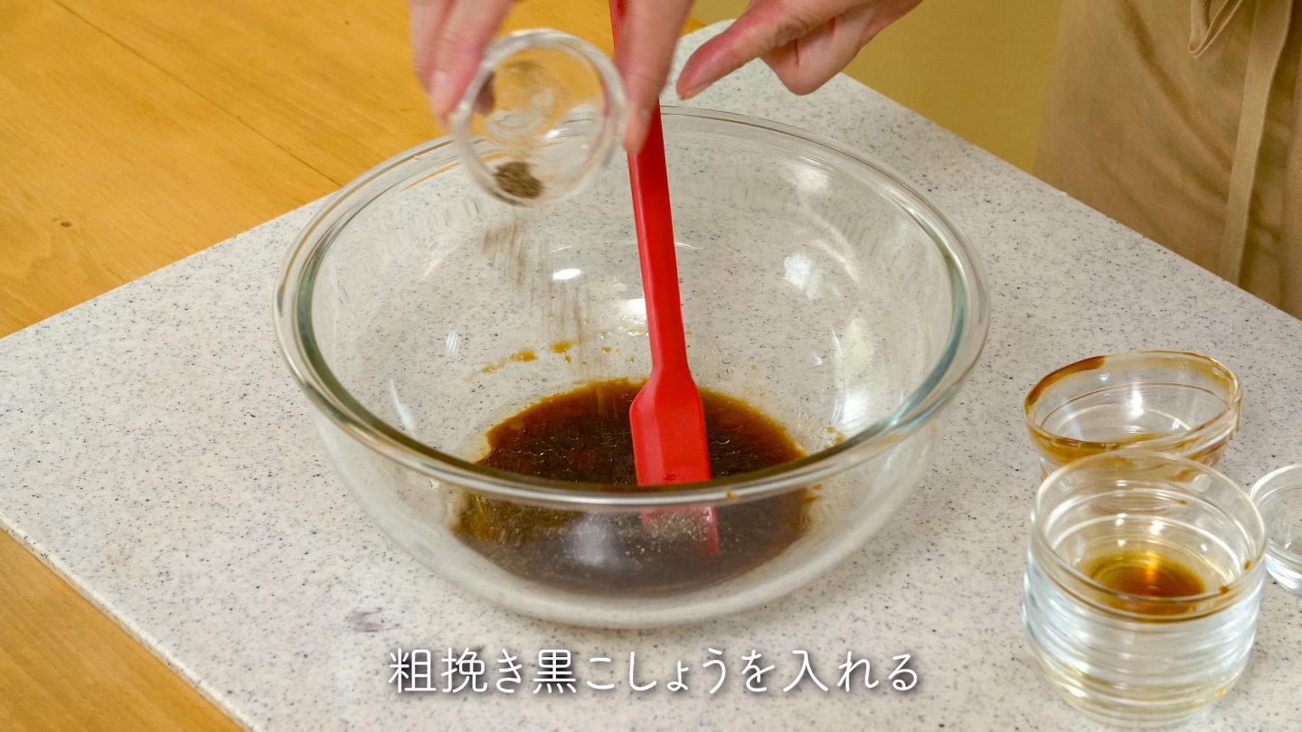 「砂糖は好みのものでOKです。仕上げに粗挽き黒こしょうを入れることで、味がキリッと引き締まります。豆板醤と粗挽き黒こしょう以外は、すべて大さじ1なので覚えやすい! 辛さはお好みで調整してくださいね」