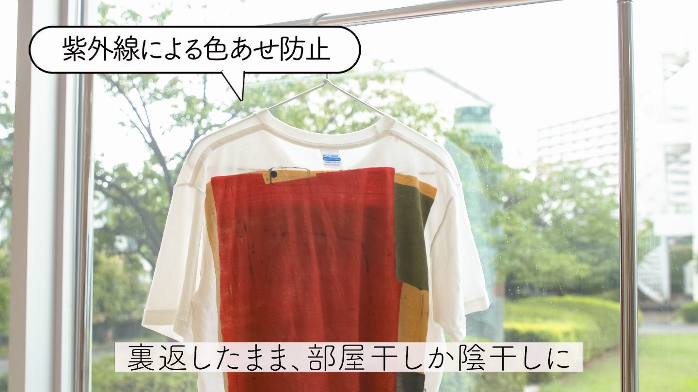「Tシャツは裏返したまま干すのがポイント! これで紫外線による色あせを防ぐことができます」