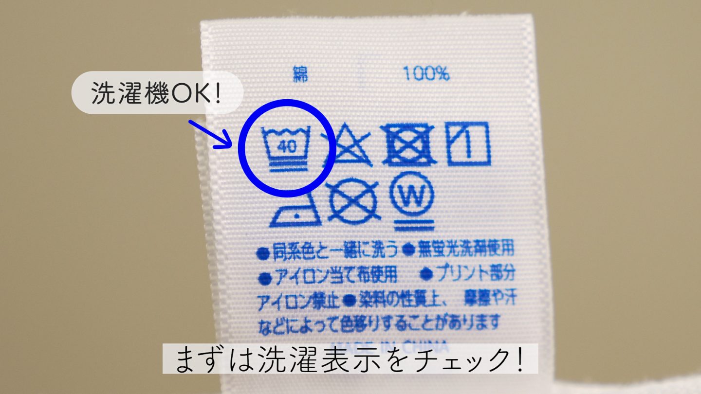 まずは洗濯表示を確認して、洗濯機でも洗えるか、必ずチェックしてください。表示の裏などに記された注意書きも確認しましょう。