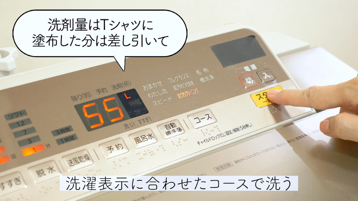 洗剤は前処理で塗布した分を差し引いて、洗濯機に入れてください」