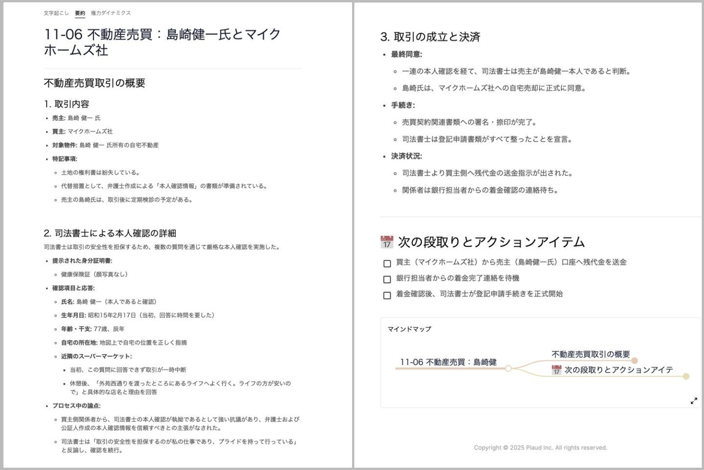 ここで、相続とは少し違いますが、試しに「Netflix」の大人気ドラマ『地面師たち』の序盤で流れるニセ契約シーンの音声を録り、それを要約してみました。
