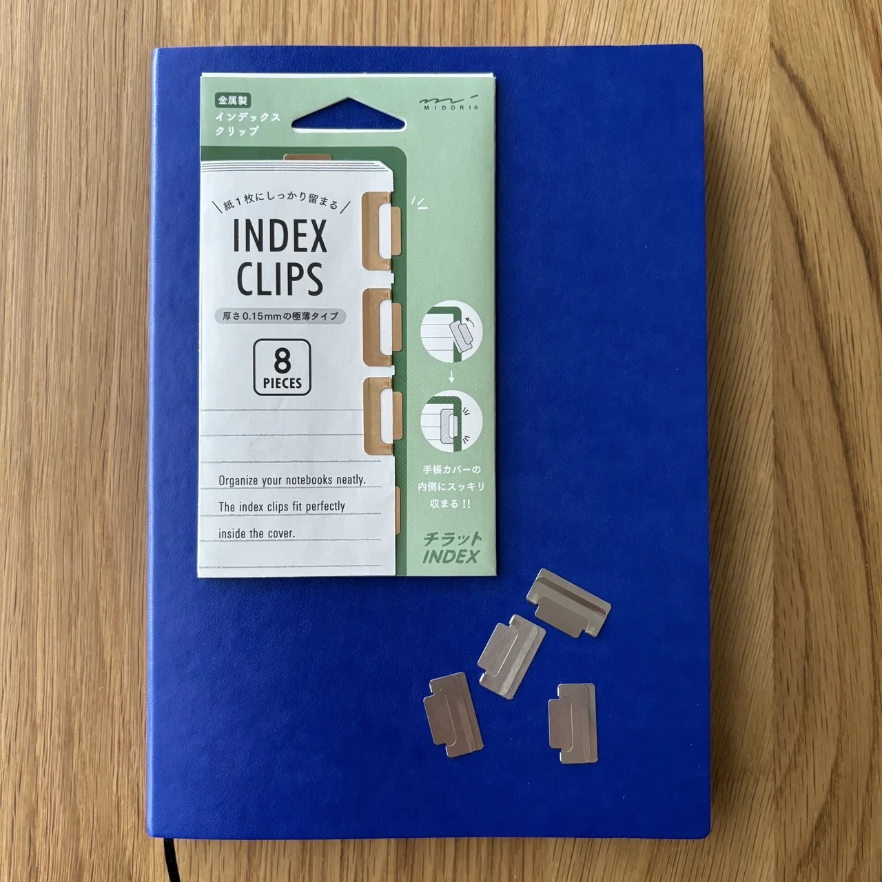 が、この商品は金属製。前からあった商品だと思いますが、金属製のインデックスを知らなかった私は、これを見て「取れることなく、スッキリかっこいい手帳になりそう」と思い、使ってみたくて購入。