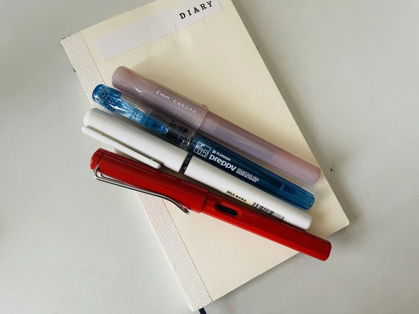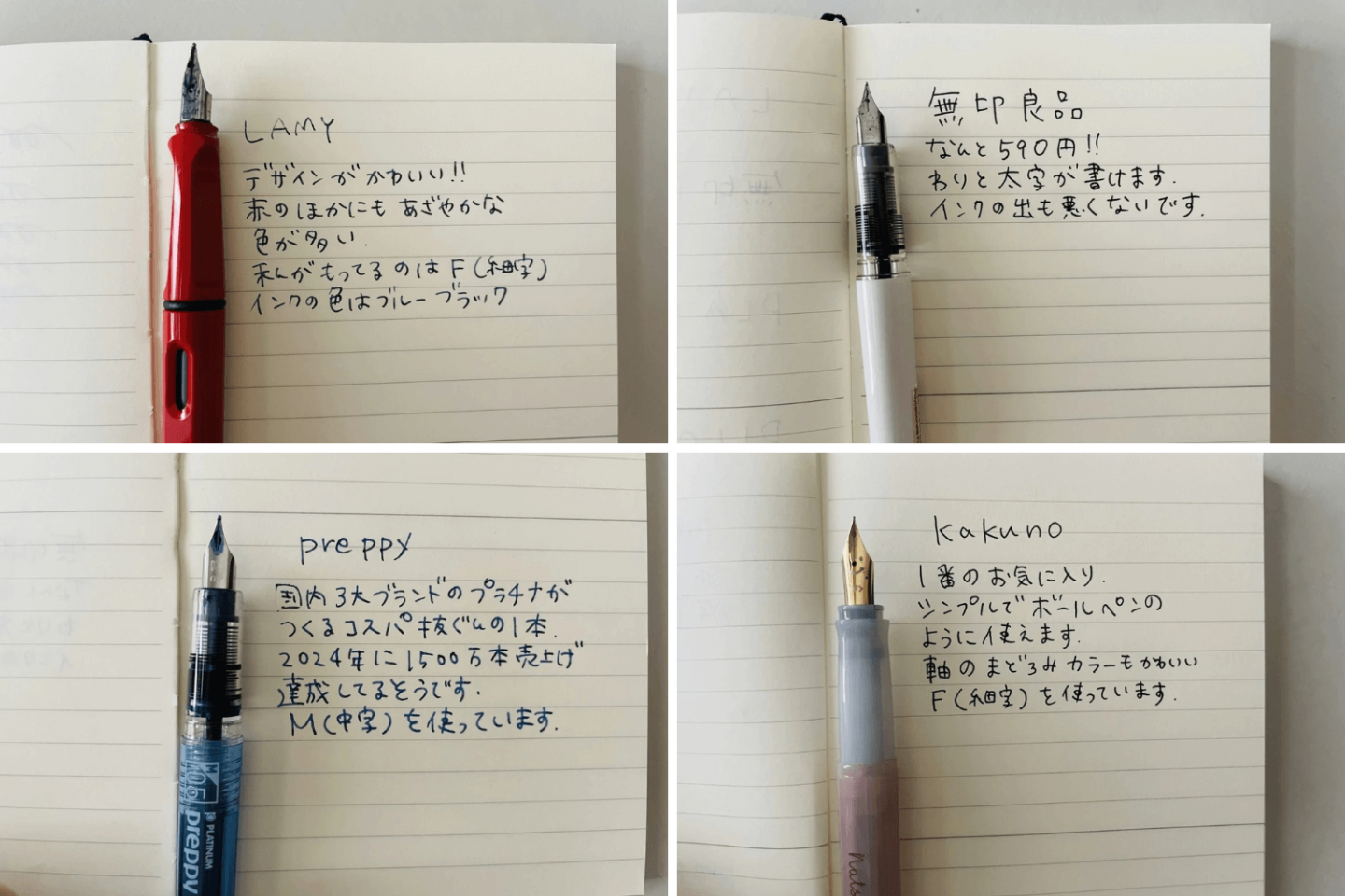 1:おすすめのリーズナブルな「万年筆」4本(「LAMY」「無印良品」「PLATINUM」「PILOT」)